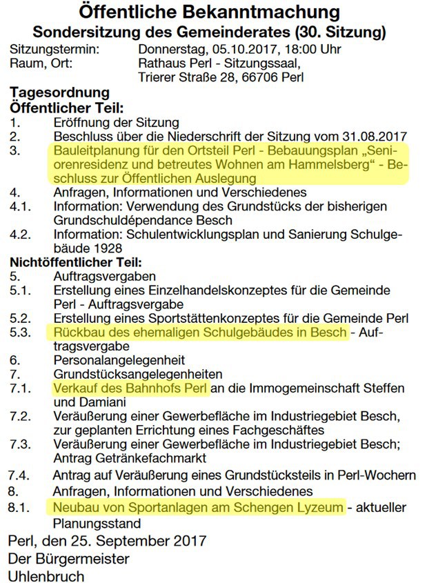Am 29.07.2015 wurde im Vereinshaus Perl der neue B-Plan incl. Lärm- und Verkehrsgutachten kontrovers diskutiert -> Erlebnisbericht!